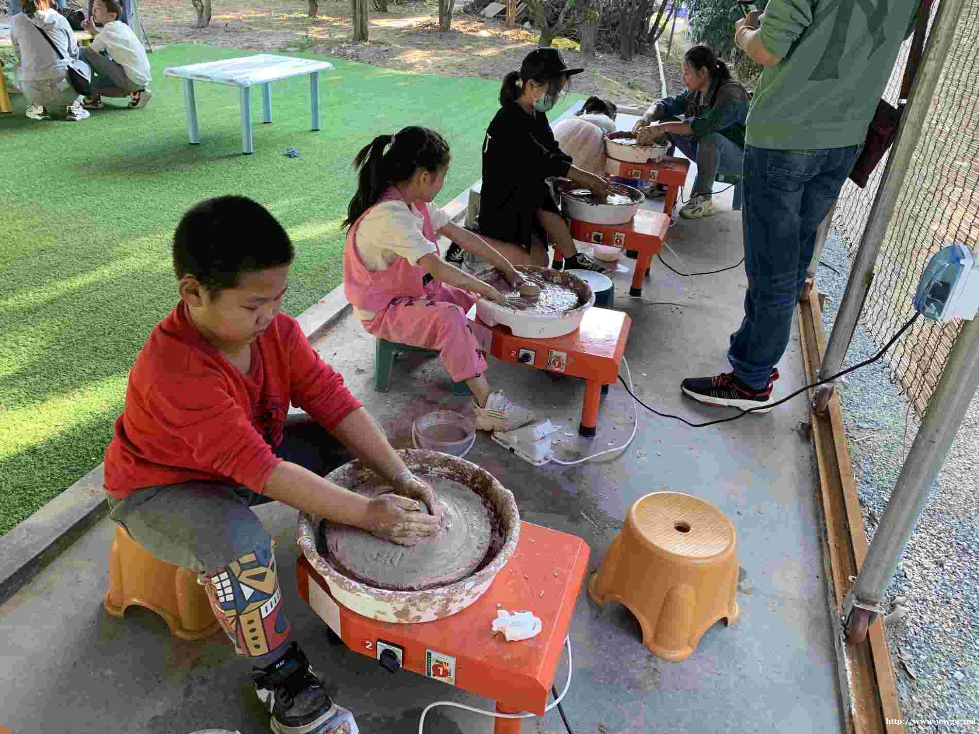 第二个热门项目就是陶艺了,园内所使用的陶泥均为景德镇红陶泥,细腻无杂质,比大部分陶吧使用的泥更高级。使用拉胚机进行塑形,所制作的作品都是可以带回去收藏的哦。